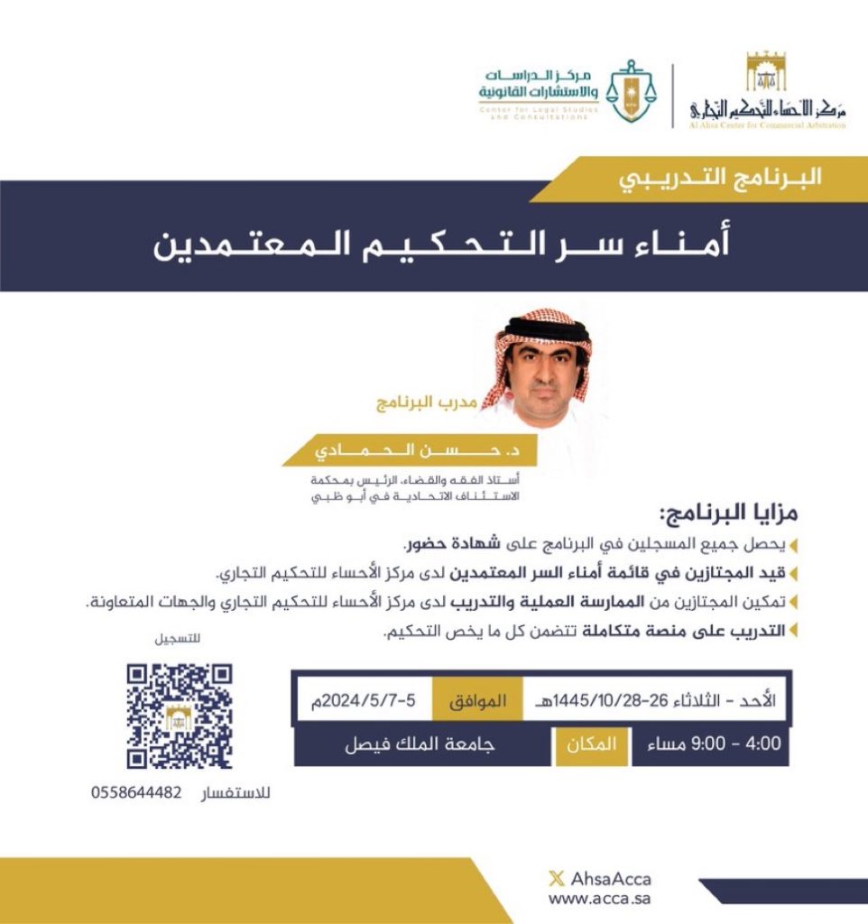 برنامج أمناء سر التحكيم المعتمدين التدريبي